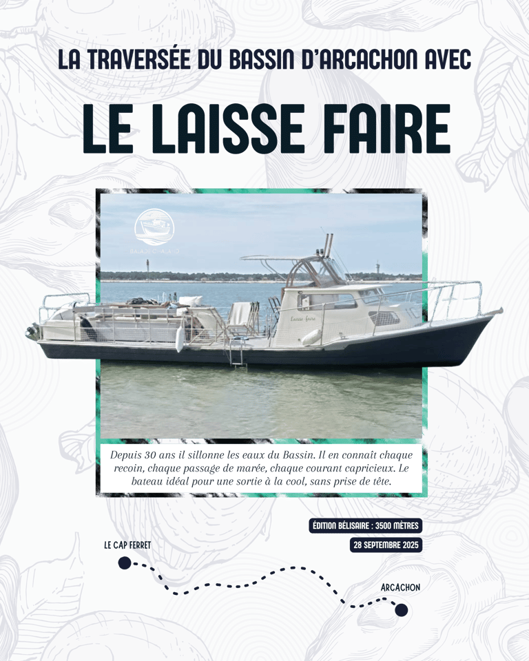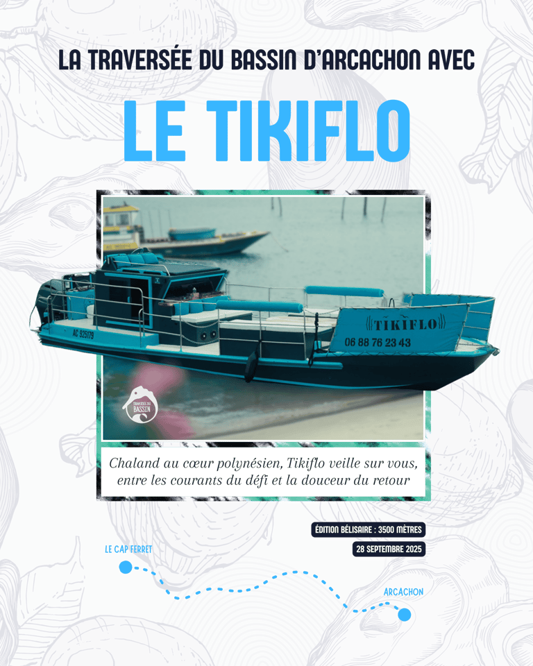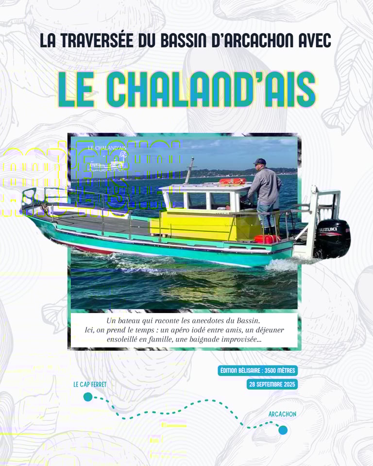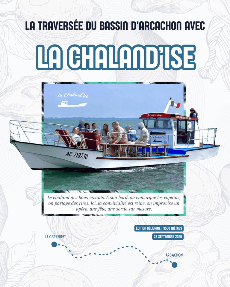 En vous inscrivant à la Traversée du Bassin, vous avez automatiquement été enregistré sur l’un de nos chalands partenaires. Vous recevrez à partir du 20 septembre un mail avec le programme complet ainsi que le nom de votre chaland.Ces bateaux jouent un rôle essentiel dans le dispositif de sécurité : ils assurent votre prise en charge en cas de besoin, en lien avec nos sauveteurs, les kayakistes de l’AS Testerine et la SNSM.